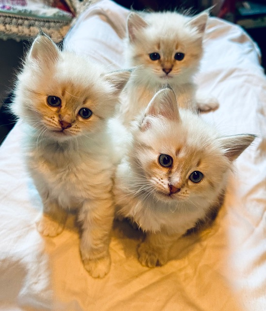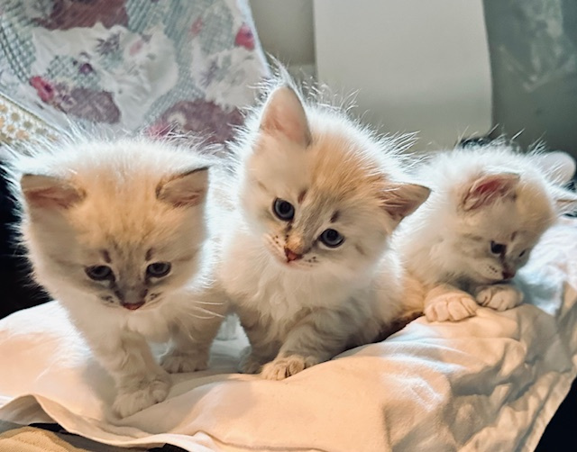 Snökullen föddes den 27 november 2023, de små fina kattungarna har fått namnen Bella, Bob och Boris.